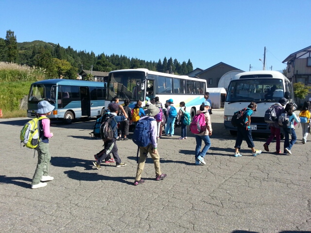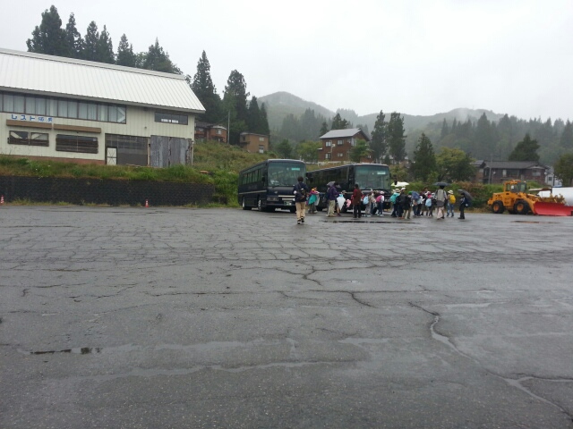9:00須原スキー場の駐車場に集合し、マイクロバス3台で移動します。