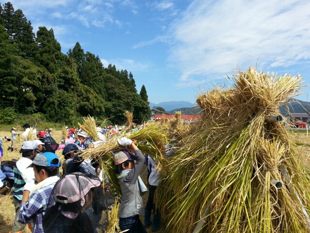 須原小学校5年生は昨日学校田を稲刈りしたので、2日続けて。