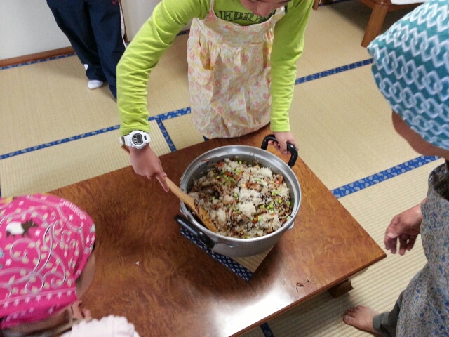 続いて郷土食体験、五目ごはん作り・・・・