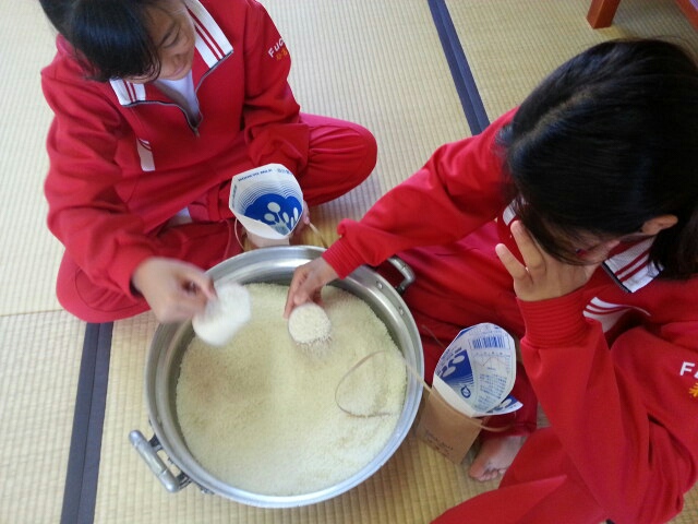 朝食後はお米のお土産作り。