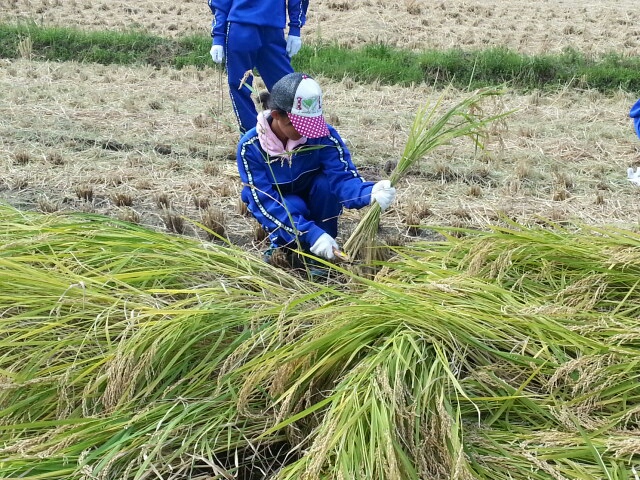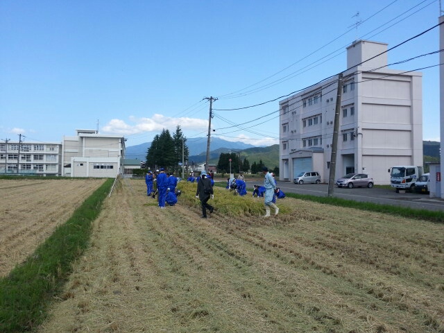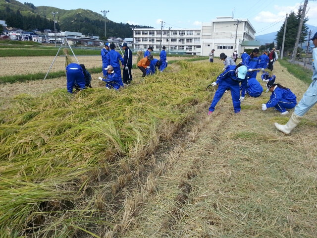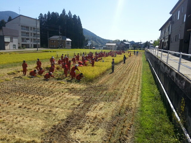 守門中学校近くの田んぼで稲刈りでした。