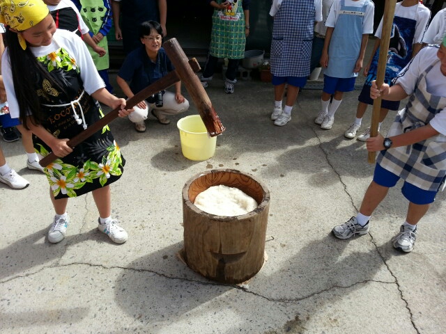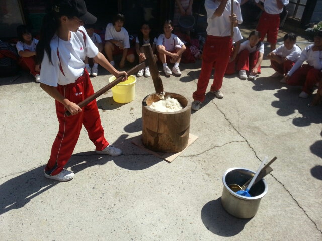 全員の生徒さんから一生懸命ついてもらい、モチモチの良いお餅がつきあがりました。