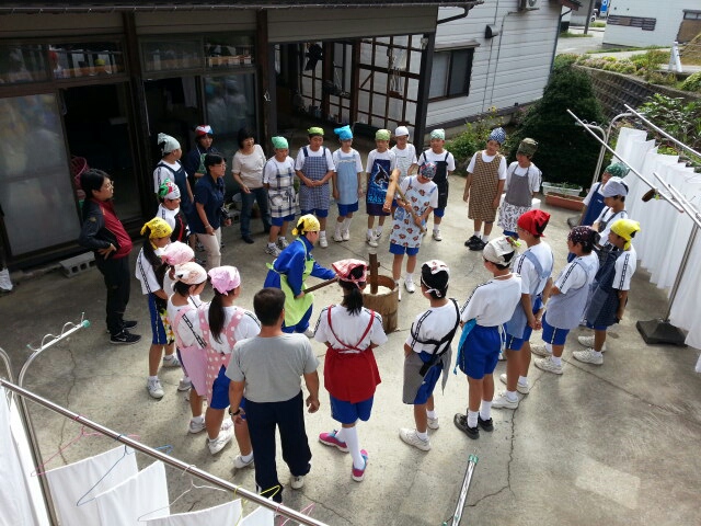 中庭でもちつき体験。