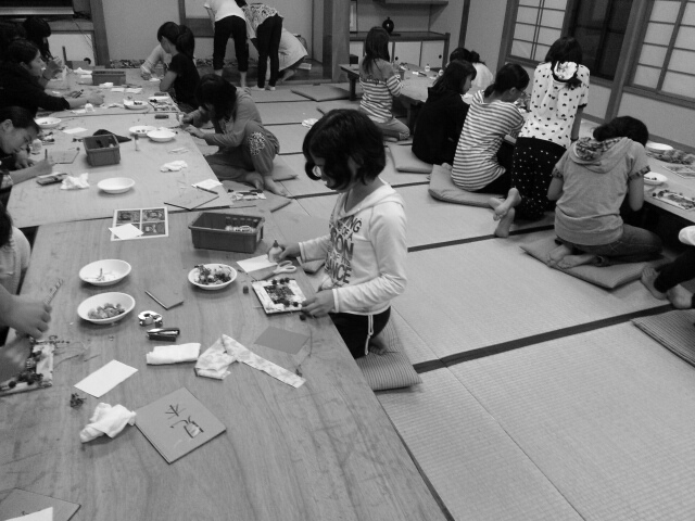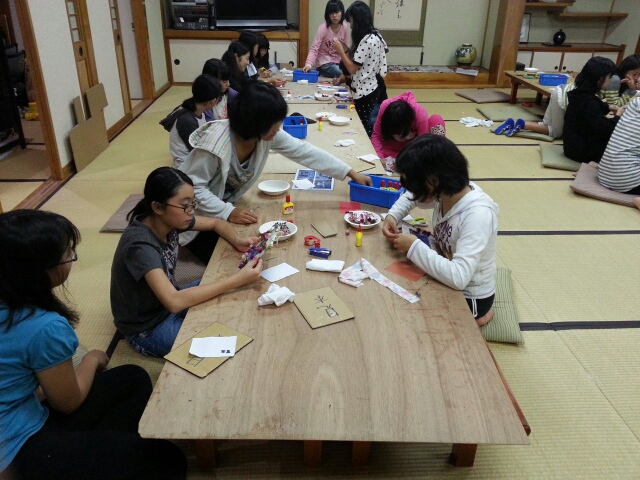 夜は宿別体験「フォトフレーム作り」。
