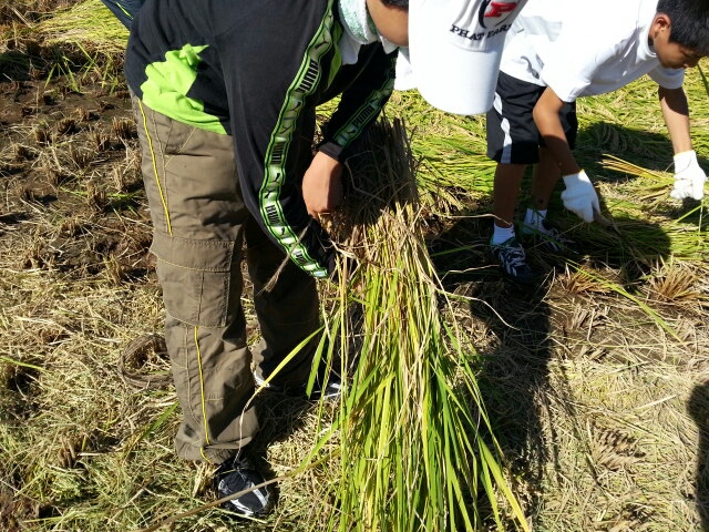 5月13日に同じ渕江中学校の2年生が田植えをした田んぼで稲刈りでした。