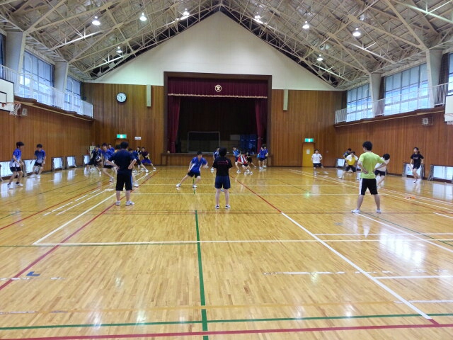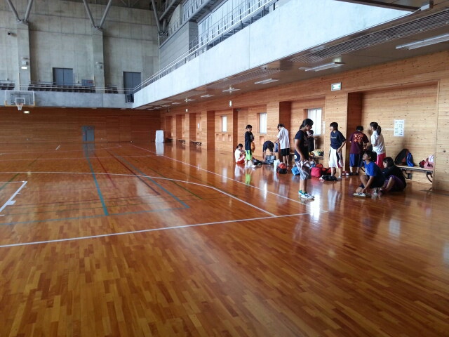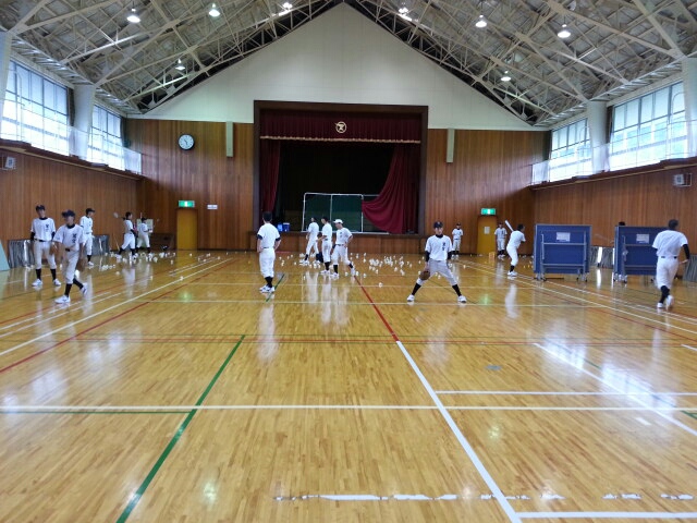 残念ながらグランド状況が悪く、体育館で屋内練習です。