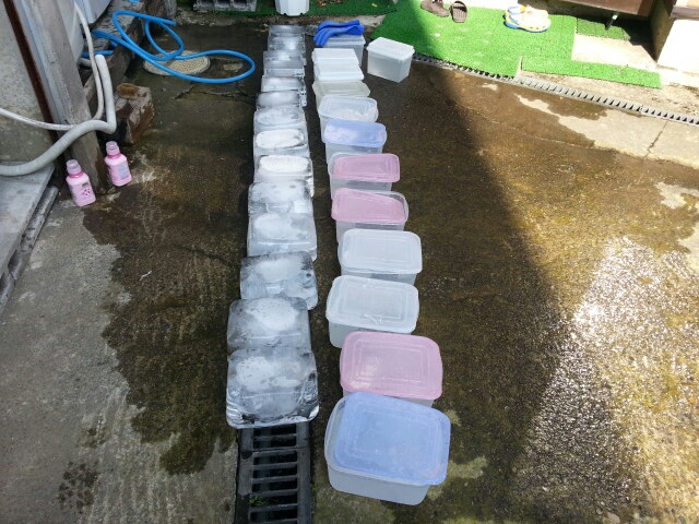 ジャグ用の大きい氷を作っています。冷凍庫で3日間掛かります。