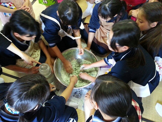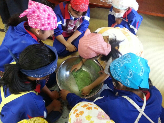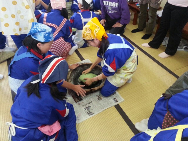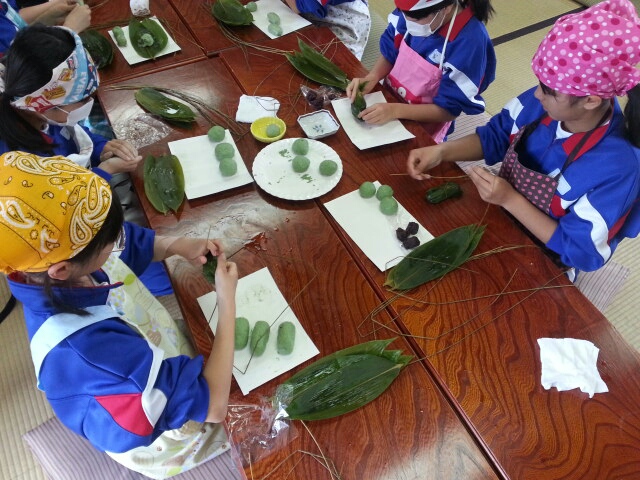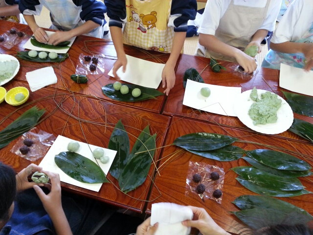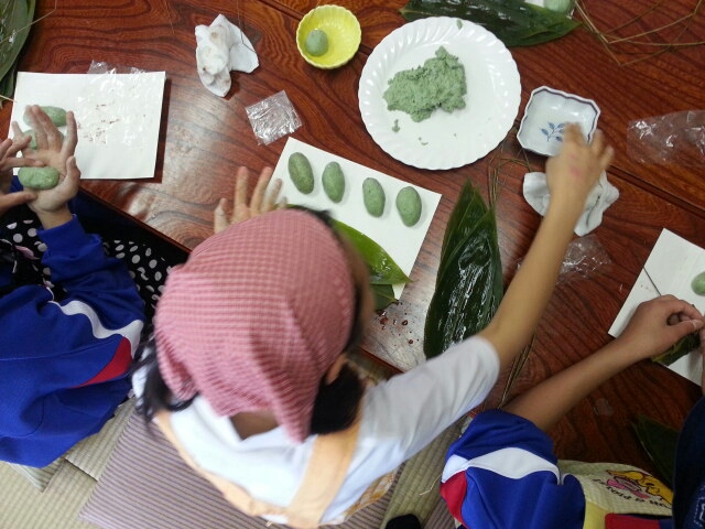 今日は午前中、食文化体験、笹団子作りに挑戦。