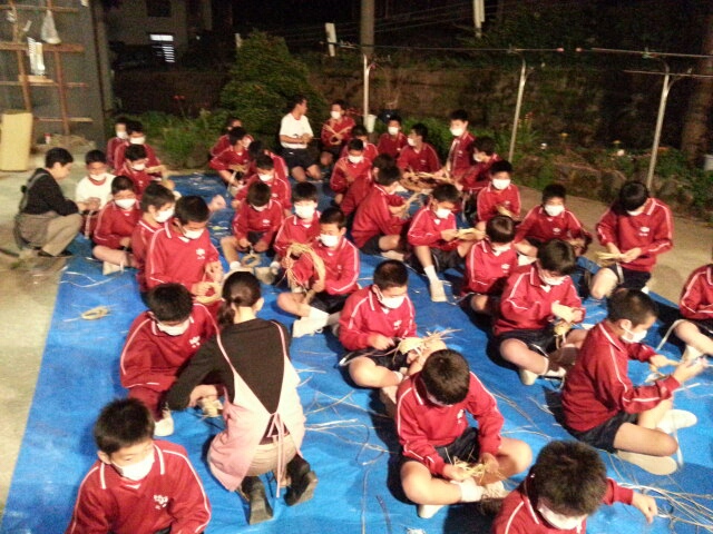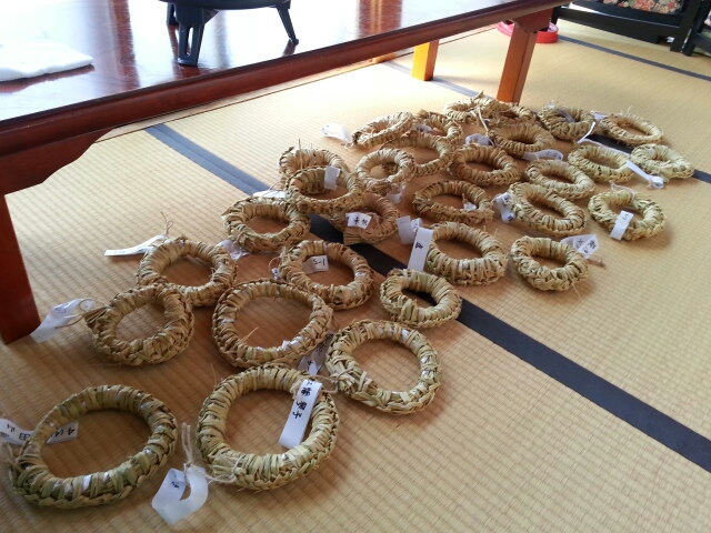 昨日の夜はわら細工体験、なべしき作り・・・・