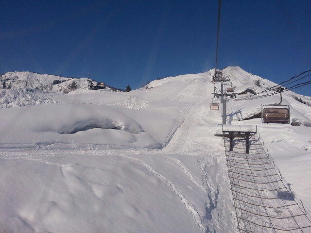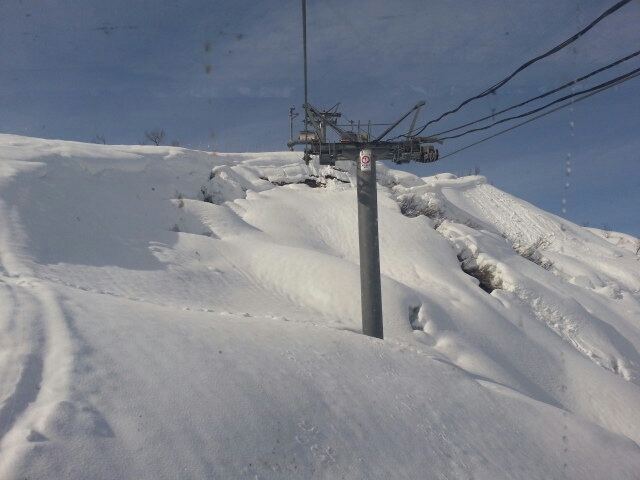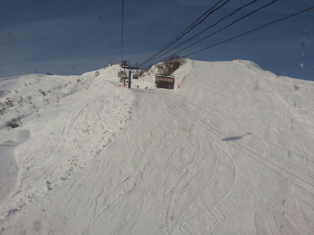山頂裏の北斜面、パウダースノー滑りやすい・・・・