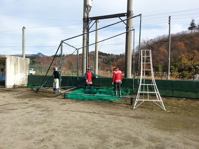 サンスポーツランドのバッティングゲージの片付けを行いました。