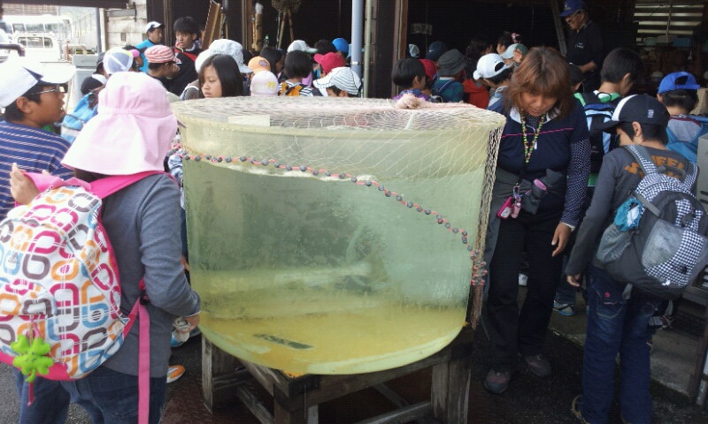 今日は漁業の学習で小出の鮭一括採捕場を見学。