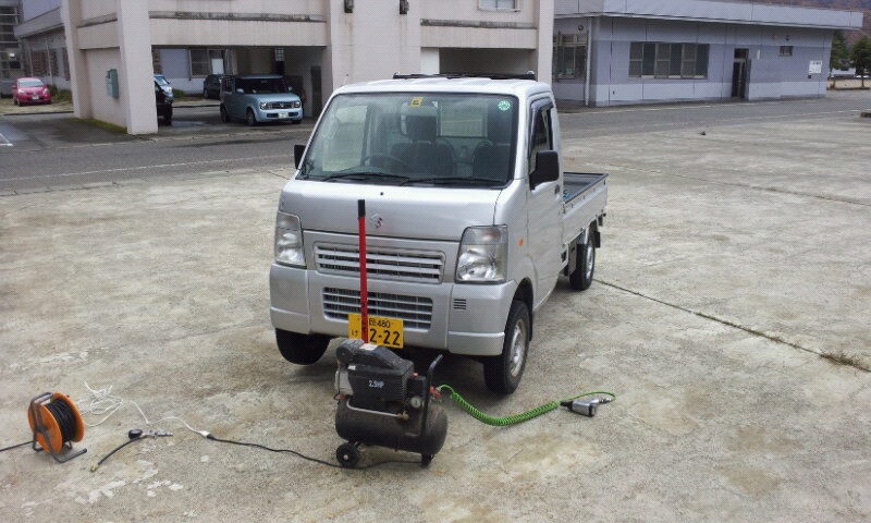 寒さと雨の予報が出ていましたので、車(軽トラック)に変更しました。