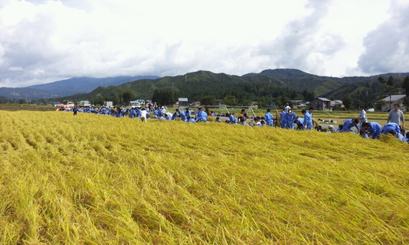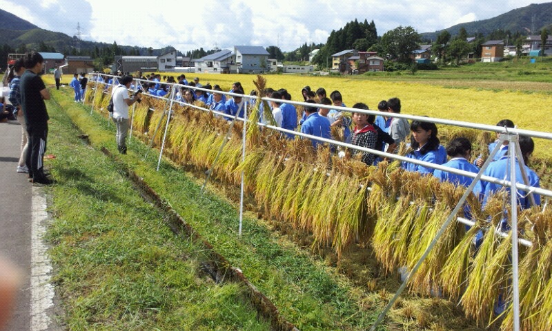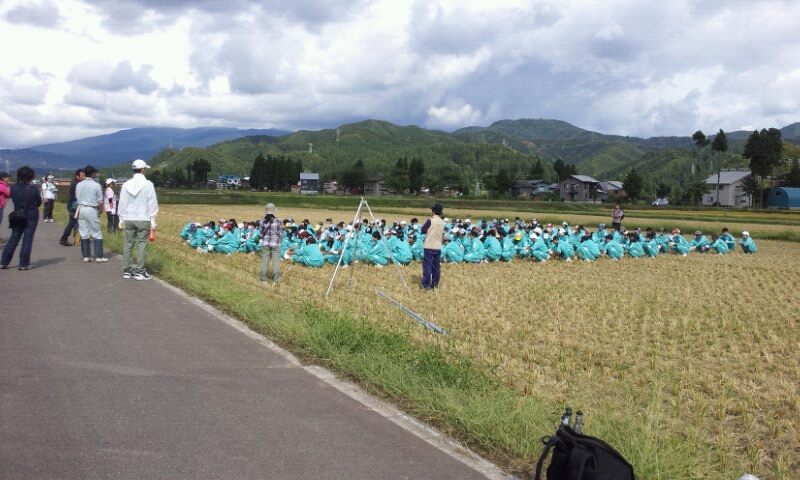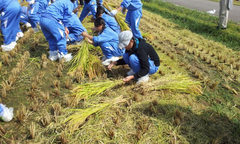 須原小学校の浦の田んぼで稲刈りを行います。