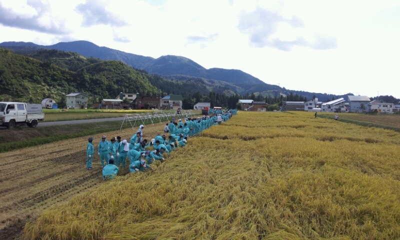 稲刈り体験で、魚沼市農業公社さんから説明して頂いています。