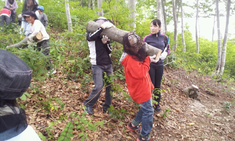 重たい木を2~4人で搬出。