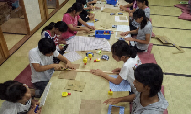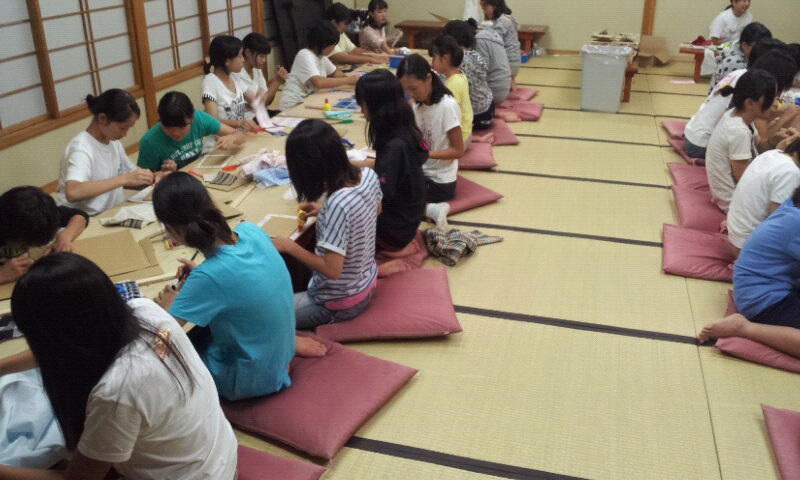 昨夜はフォトフレーム作り、大広間が工作室に・・・・