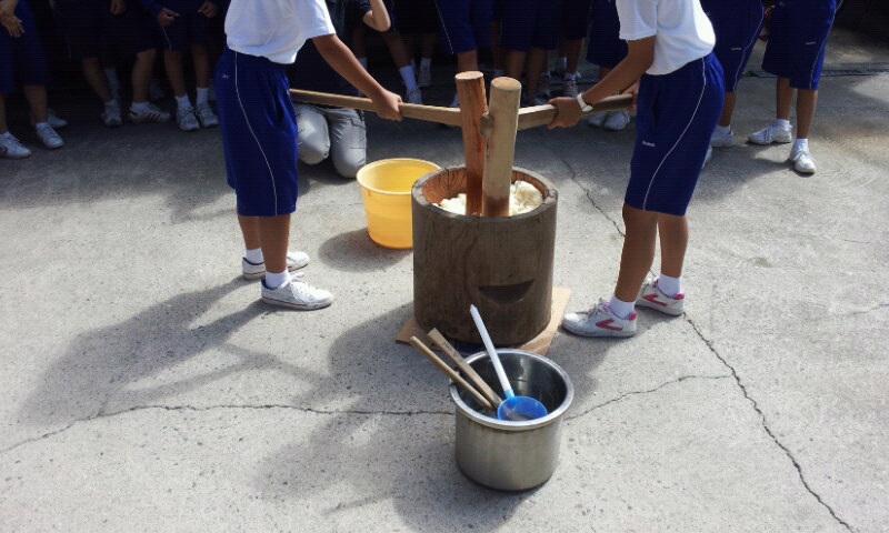 道の駅でお土産購入後、宿舎にてもちつき体験・昼食。