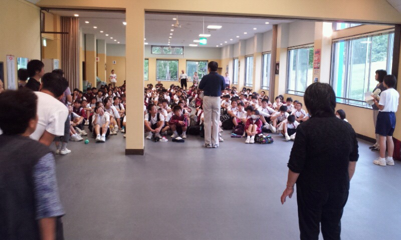 今日は生憎の雨となり、8:00に屋内で閉校式。