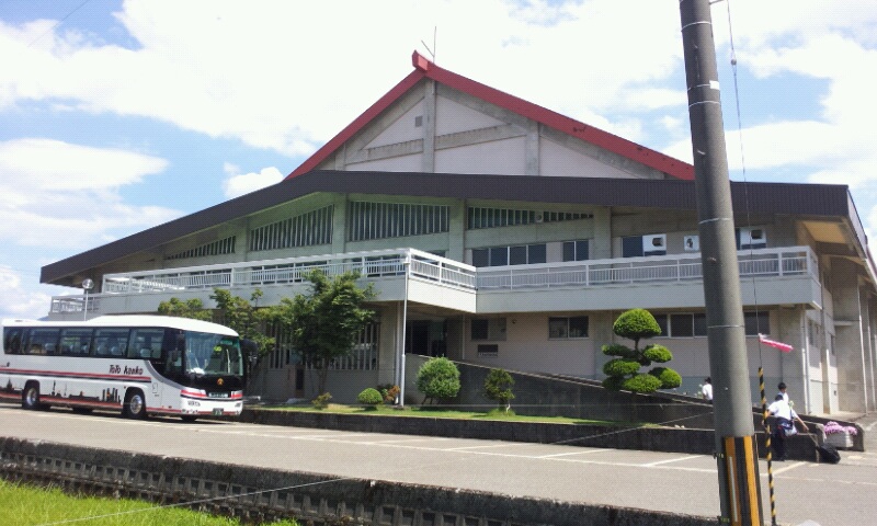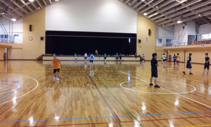 小西屋に宿泊中の中学生は小出郷体育館で練習です。