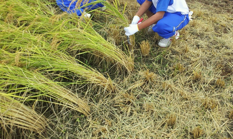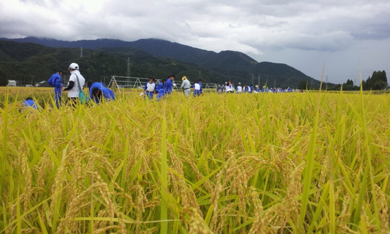 足立区立千寿桜堤中学校様午後から稲刈りを行いました。