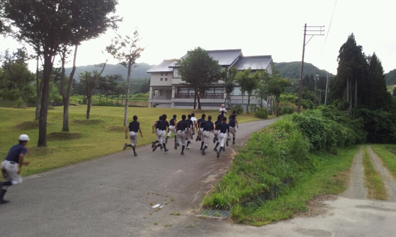 野球場での練習後は宿舎の近くで坂道ダッシュ・・・・