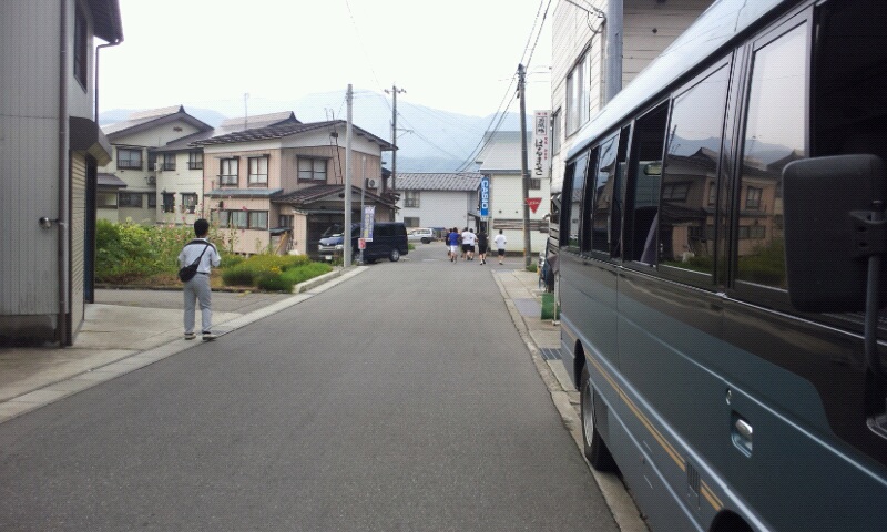 練習前に宿舎から広神野球場まで7km程のランニングです。