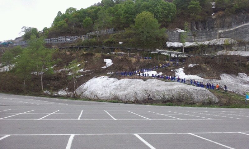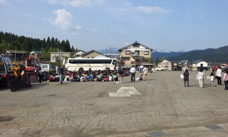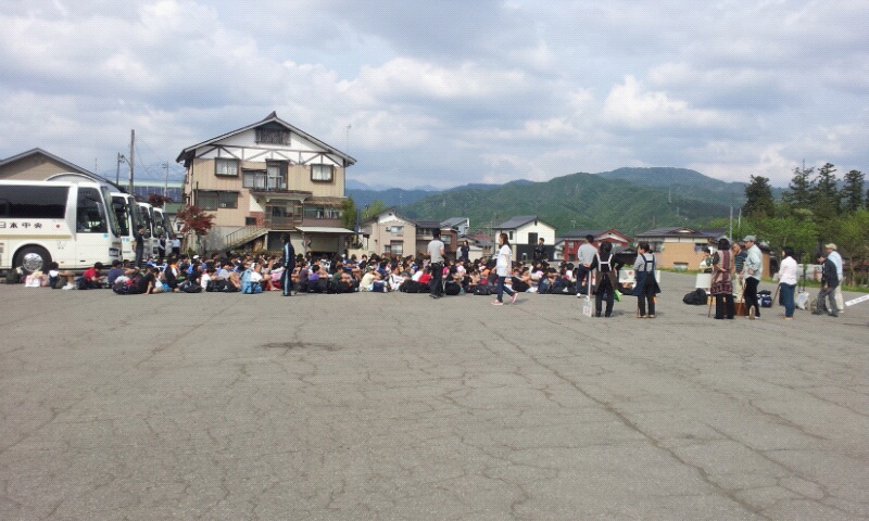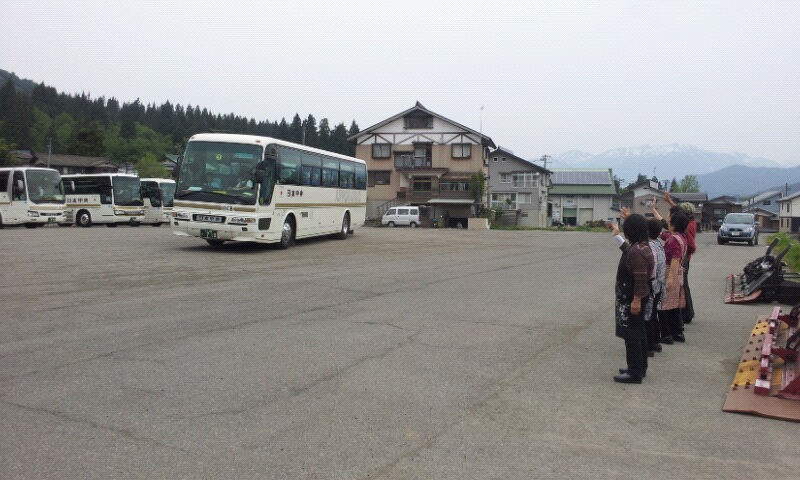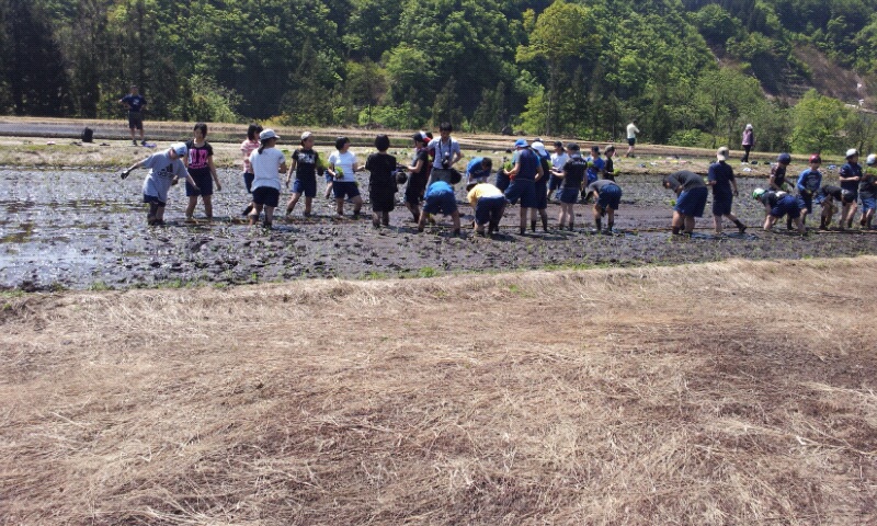 お昼に到着し昼食、田植えを行い3:20から入村式。