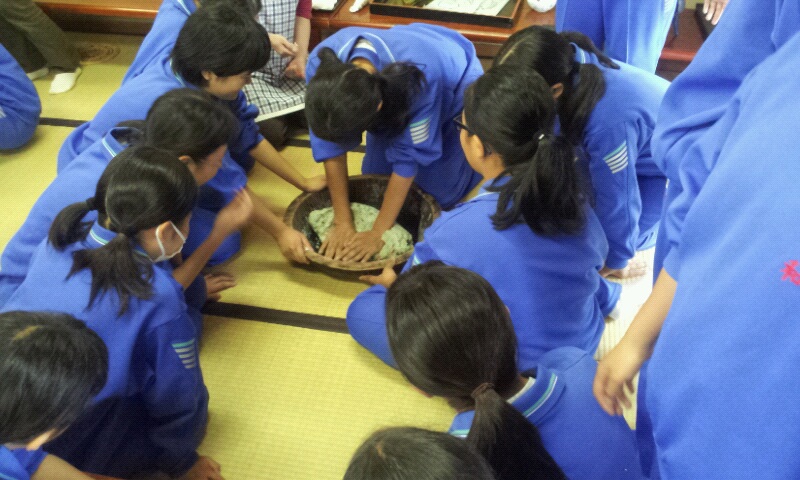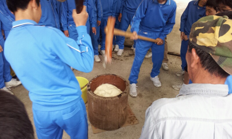 午前中は各宿舎で昼食を兼ねたもちつき体験。