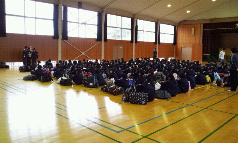 お昼前に足立区立第十四中学校様、2年生297名、8クラスが到着。