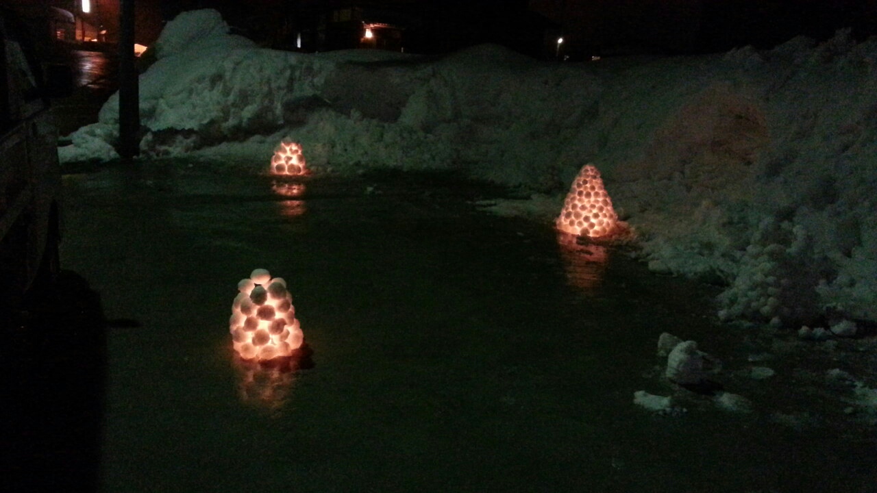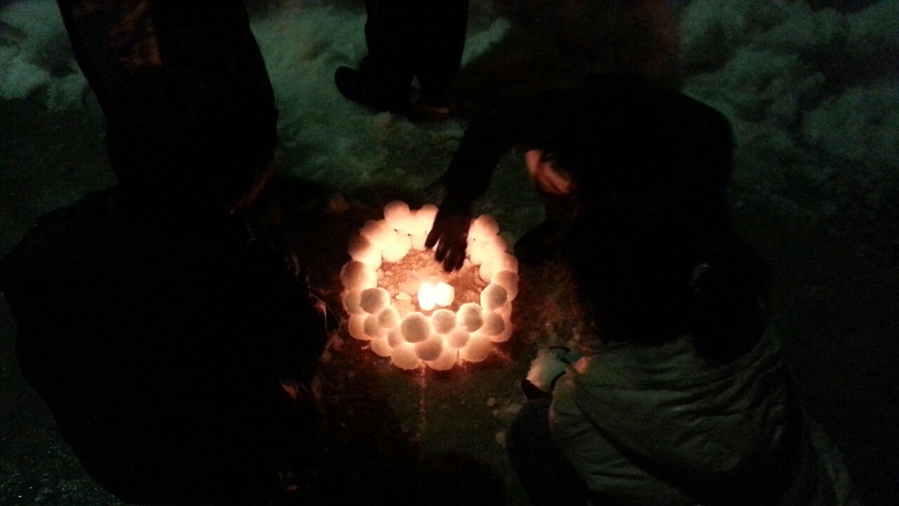 夕食後は各宿舎で雪灯籠つくりを・・・・