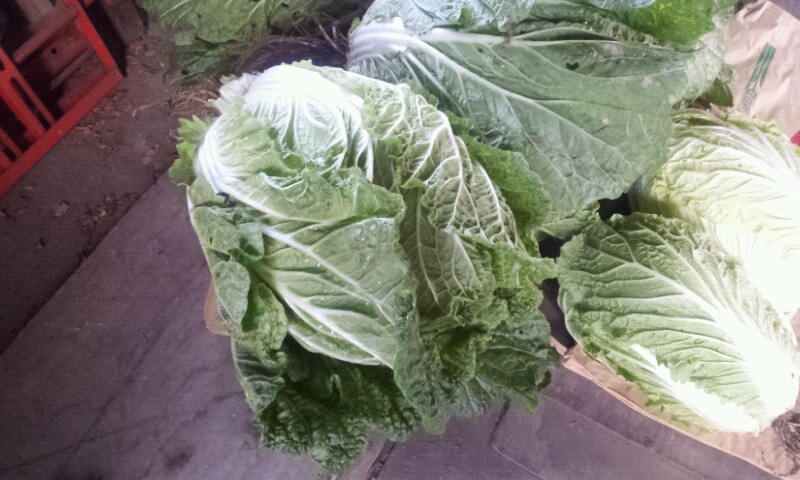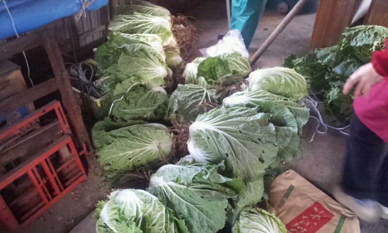 漬物にするため洗濯干しの上に載せています。