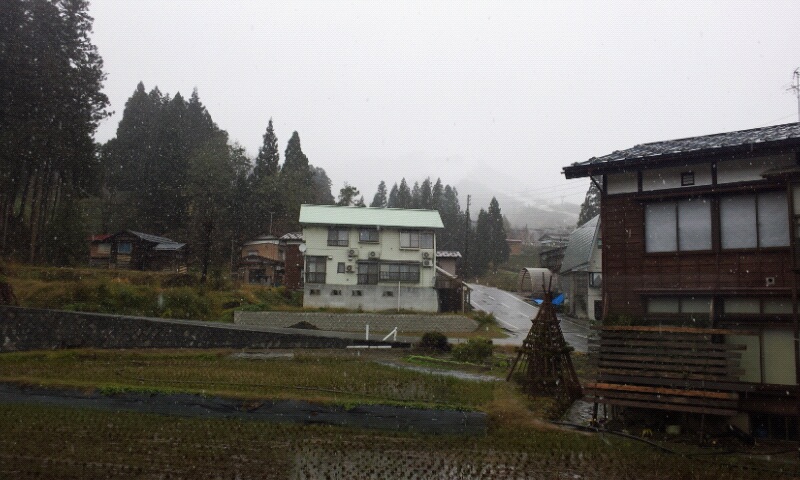 積もるまではいかないと思いますが今朝から雪が降っています。