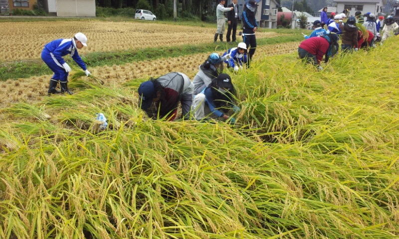 午後からは稲刈りした稲を一粒一粒大事にしてはざ掛けに・・・・