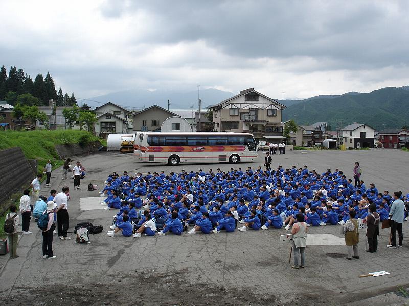 須原スキー場の駐車場で入村式、2泊3日のスタートです。