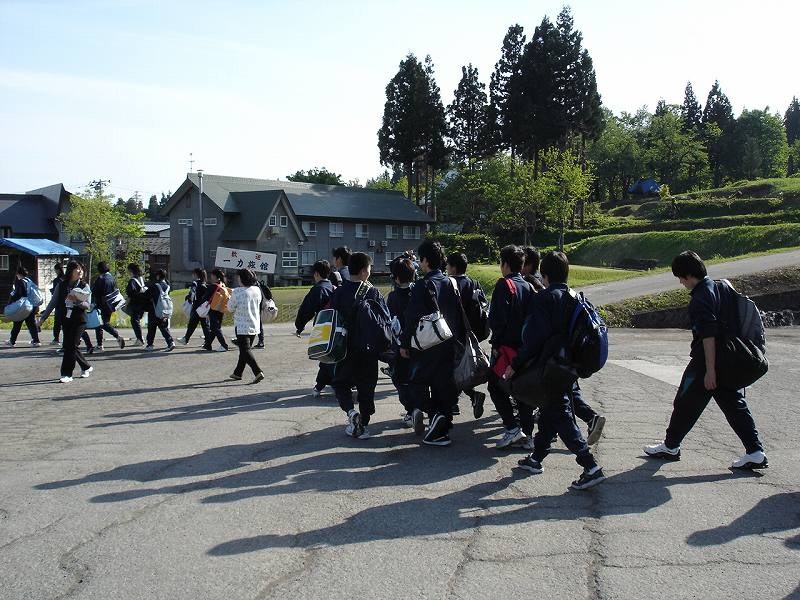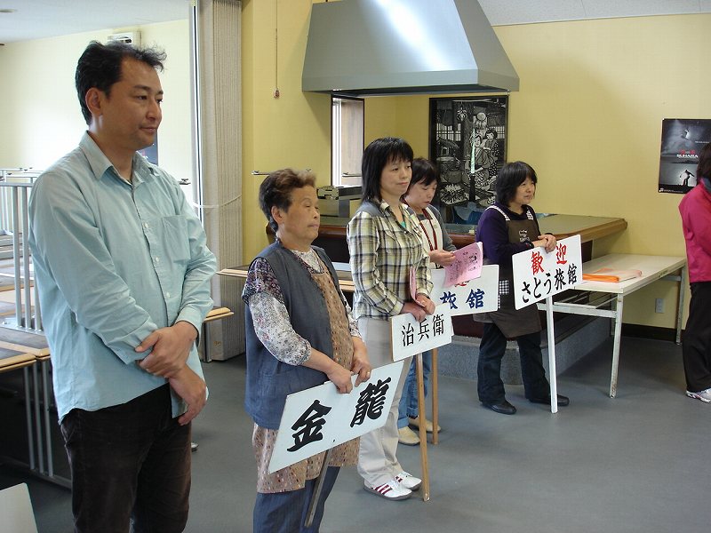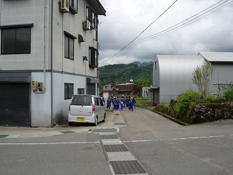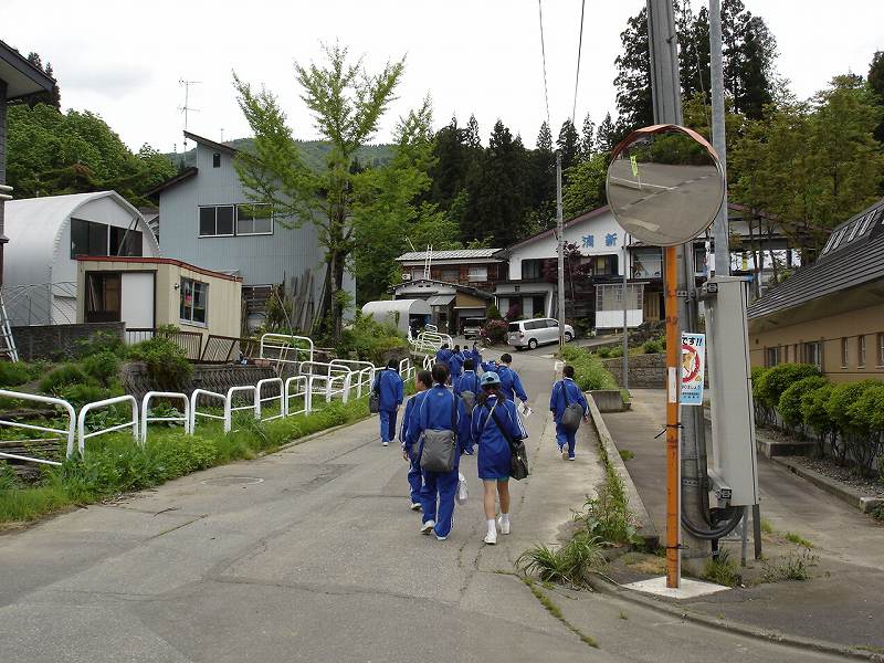 生徒さんは7軒分宿、宿の方の案内で民宿旅館に向かいます。
