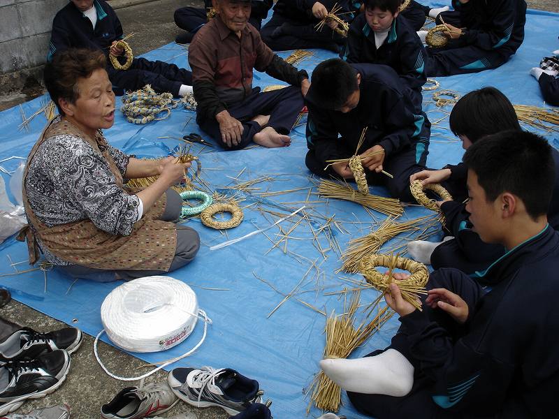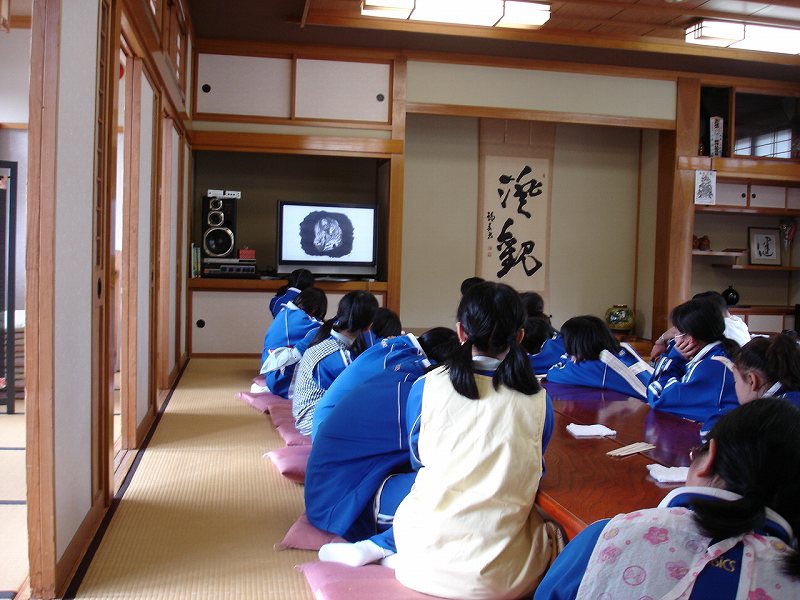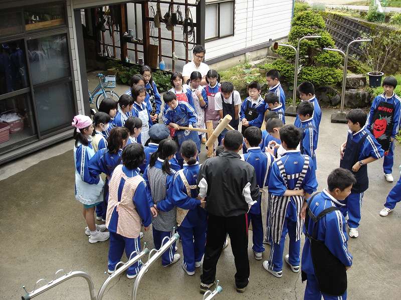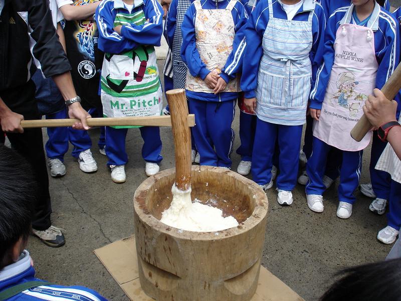 午前中は各クラスに分かれて、旅館民宿でもちつき体験。