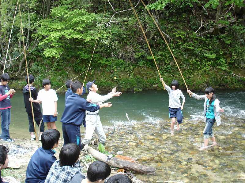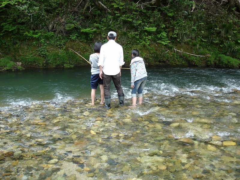 一力旅館さん・港屋旅館さん担当、松川川で釣り体験。