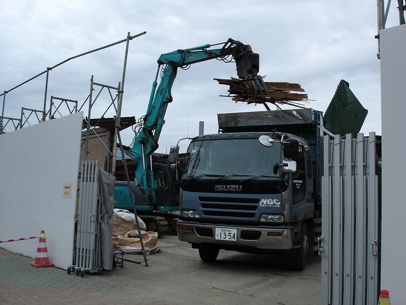 小出駅、今まではあった駅は解体作業が進んでいました。