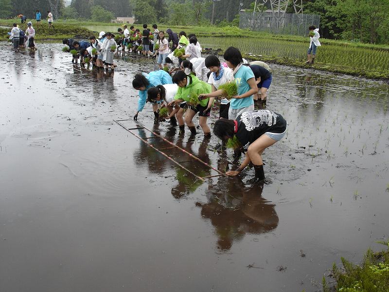 お昼に竜光地区に到着、昼食後田植え体験をし、