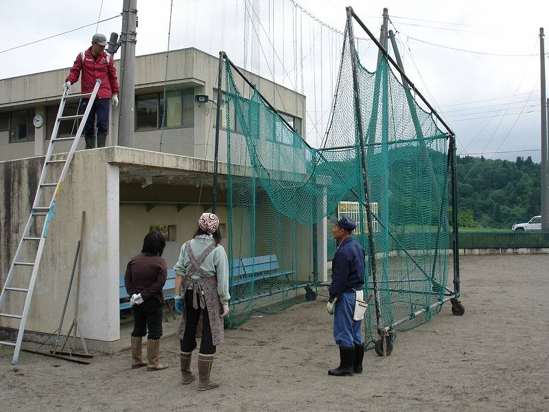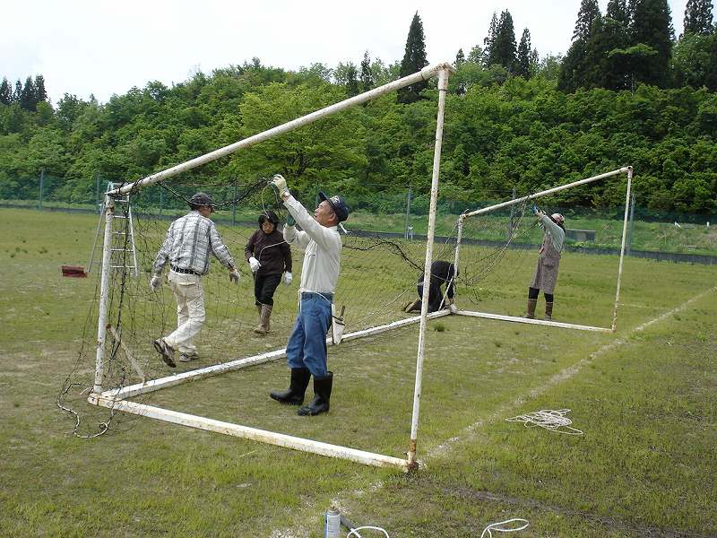 午前中は旅館民宿が集まり、守門サンスポーツランド野球場の