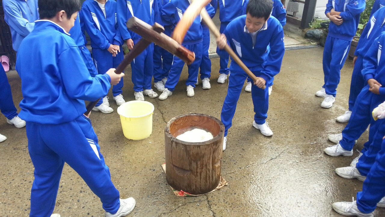 さすが男の子、力がありおいしいお餅がつき上がりました。