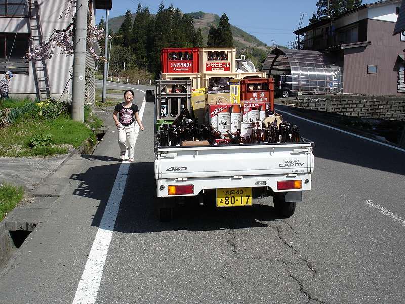 地域の子供たちと一緒に空き瓶、アルミ缶回収。