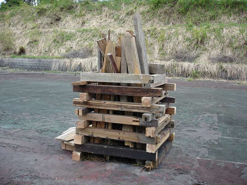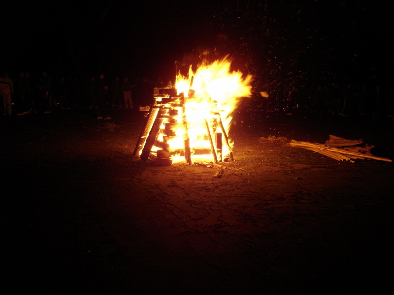 朝には守門の民宿・旅館が集まり、今夜行うキャンプファイヤーの準備。