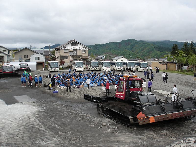 お昼過ぎに須原スキー場の駐車場で退村式。