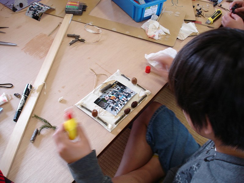 皆さん1時間ぐらいで思い思いのフォトフレームを作成。
