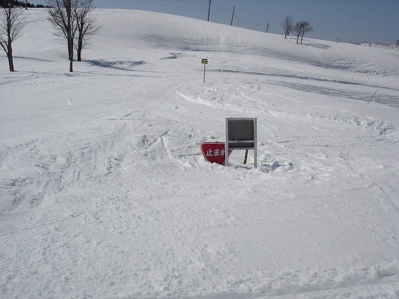 山頂裏のゲレンデには止まれの看板。