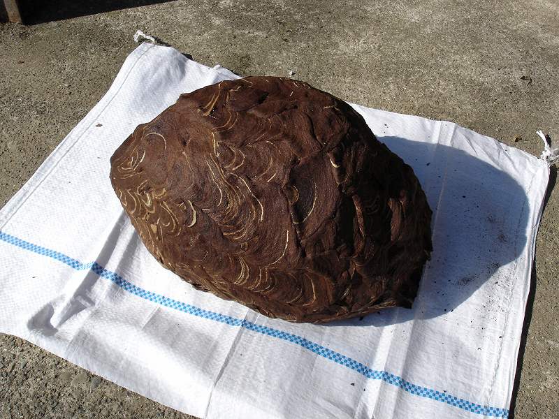 大きいハチの巣は縁起物として玄関に飾っています。