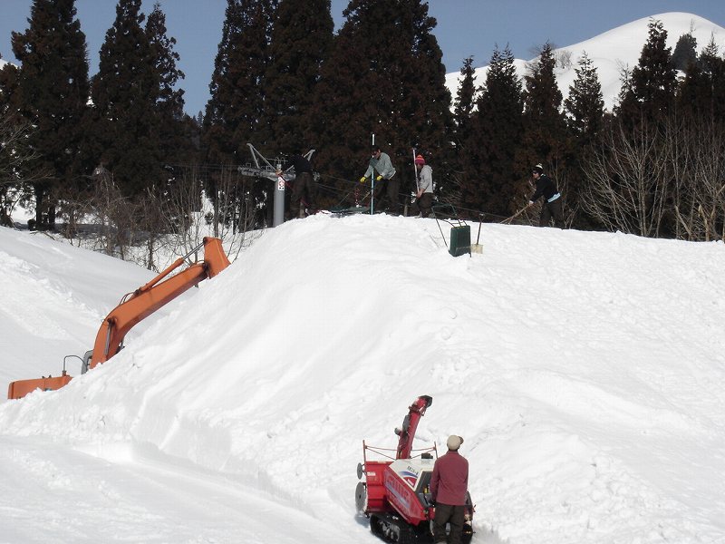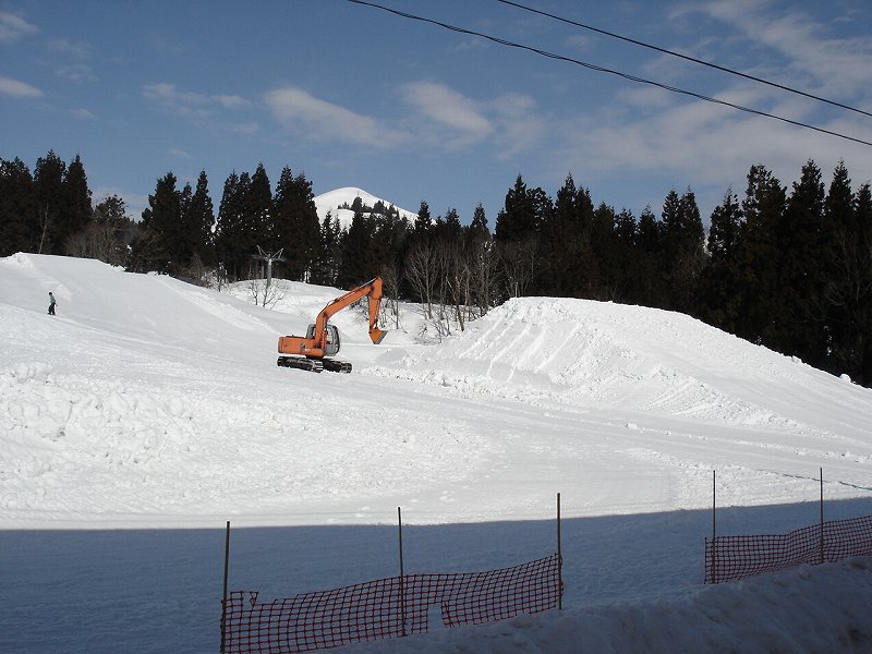 ロマンスゲレンデ脇には大きなクォーターパイプが作られます。