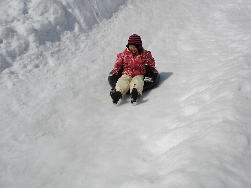 小2の文乃はスノーチューブで楽しんでいます。
